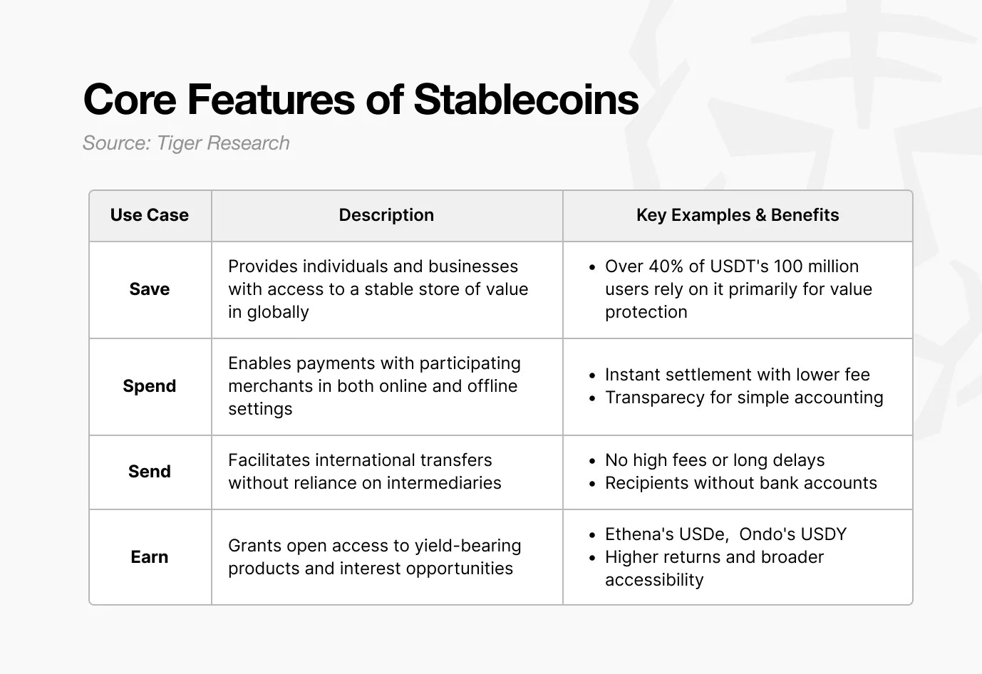 Minat global terhadap stablecoin semakin meningkat. Namun, perbedaannya dengan metode pembayaran digital pada umumnya masih belum jelas bagi banyak orang. Hal ini sebagian karena sistem keuangan digital sudah lama dikenal. Kartu kredit dan dompet digital telah lama memungkinkan transaksi digital.