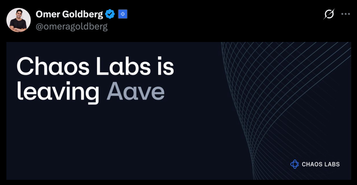4월 6일 바로 어제, 아베(Aave)의 리스크 큐레이터 카오스 랩스(Chaos Labs)가 리스크 관리 방향성에 대한 이견을 이유로 생태계를 떠날 것을 알렸다. 카오스 랩스 측은 이번 결정의 배경을 크게 세 가지로 밝혔다.