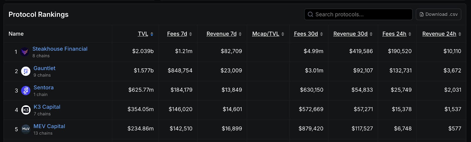 Gauntlet and Steakhouse Financial are established risk management firms in the DeFi sector, with experience setting parameters for major lending protocols and advising leading DeFi projects. Their role is comparable to that of professional asset managers in traditional finance. They assess which protocols capital should be allocated to, determine appropriate position sizes, and monitor risk exposure on an ongoing basis.