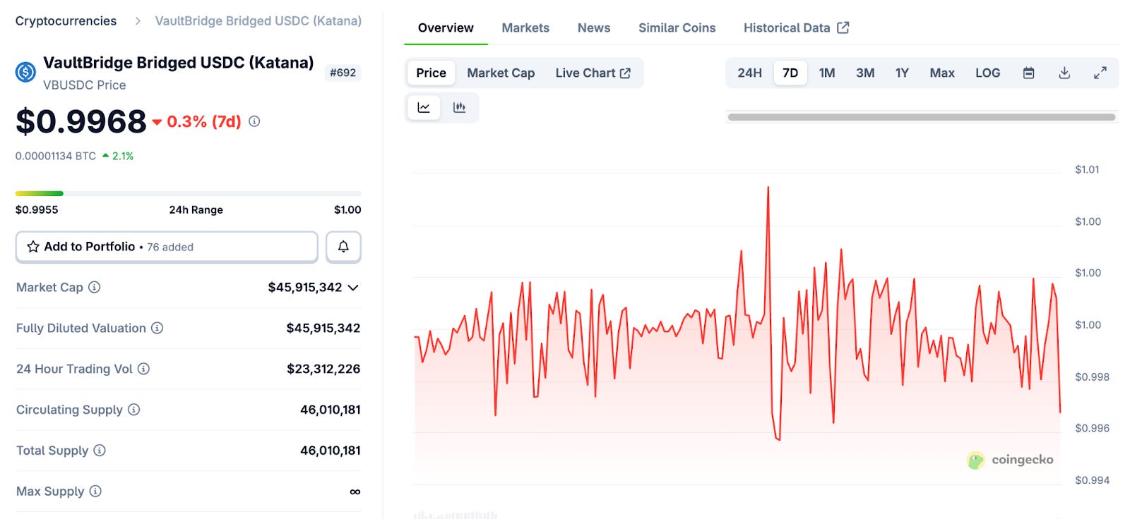 vbTokens work differently. Holding vbUSDC in your wallet does not increase the quantity or price. The yield Vault Bridge generates on Ethereum does not flow to individual vbToken holders. It flows to Katana’s DeFi pools. Revenue is distributed periodically to the network, strengthening incentives for Sushi liquidity pools and Morpho lending markets.