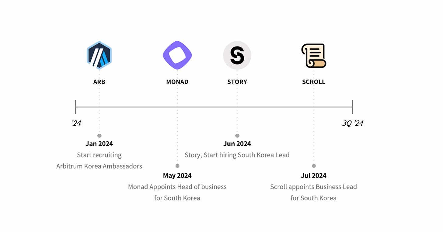 This year, mainnet projects like Arbitrum, Monad, Story, and Scroll are rapidly expanding their presence in Korea, each employing unique strategies focused on community building, education, and strategic partnerships to grow their ecosystems.