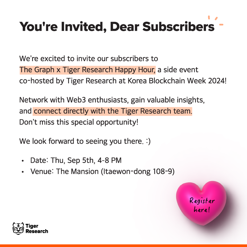 Tiger Research allows the fair use of its reports. ‘Fair use’ is a principle that broadly permits the use of specific content for public interest purposes, as long as it doesn't harm the commercial value of the material. If the use aligns with the purpose of fair use, the reports can be utilized without prior permission. However, when citing Tiger Research's reports, it is mandatory to 1) clearly state 'Tiger Research' as the source, 2) include the Tiger Research logo(Black/White). If the material is to be restructured and published, separate negotiations are required. Unauthorized use of the reports may result in legal action.