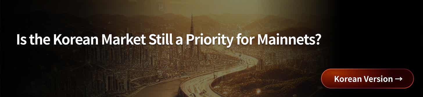 While some mainnets are gradually onboarding projects within their respective domains, others have taken a more passive stance. For instance, Near Protocol hasn't seen any notable activity outside of partnerships and event hosting since the establishment of the Near Korea hub. Similarly, other mainnets have largely maintained surface-level partnerships without deeper engagement. Additionally, networks like Oasys have lost momentum in the Korean market, partly due to the departure of key business development personnel.