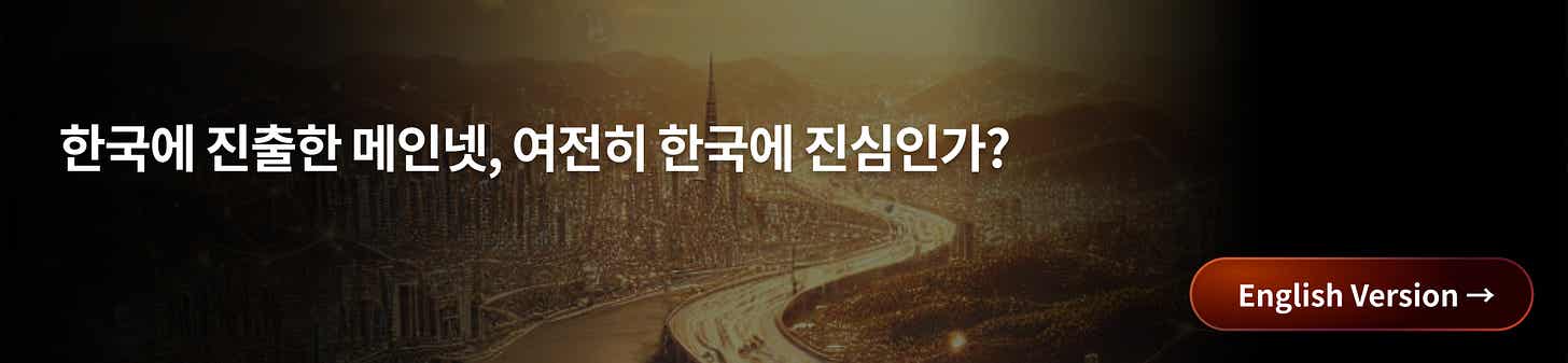 2024년 현재, 한국은 가상자산 이용자 보호법 시행과 진척되지 않는 STO 규제 등으로 인해 웹3 사업들이 다소 주춤하고 있다. 그럼에도 불구하고 한국 시장은 풍부한 유동성과 뛰어난 개발자 풀을 보유하고 있어 다양한 메인넷들이 꾸준히 진출하고 있다.