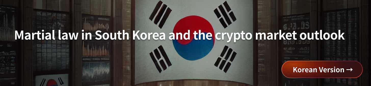 This opinion piece excludes political views on the recent martial law situation in South Korea. It focuses only on the impact and short-term outlook for the blockchain and cryptocurrency investment market.