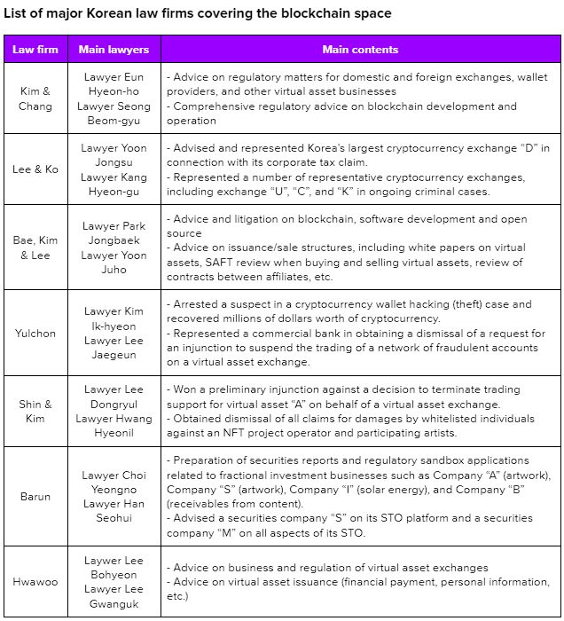South Korea's major law firms are offering a specialized approach to the blockchain market based on their strong expertise in traditional financial regulation and proficiency in government affairs. These firms have taken on advisory roles in major cases in Korea, and have joint blockchain-related teams to provide clear and specialized advice in new regulatory contexts and unexplored areas.