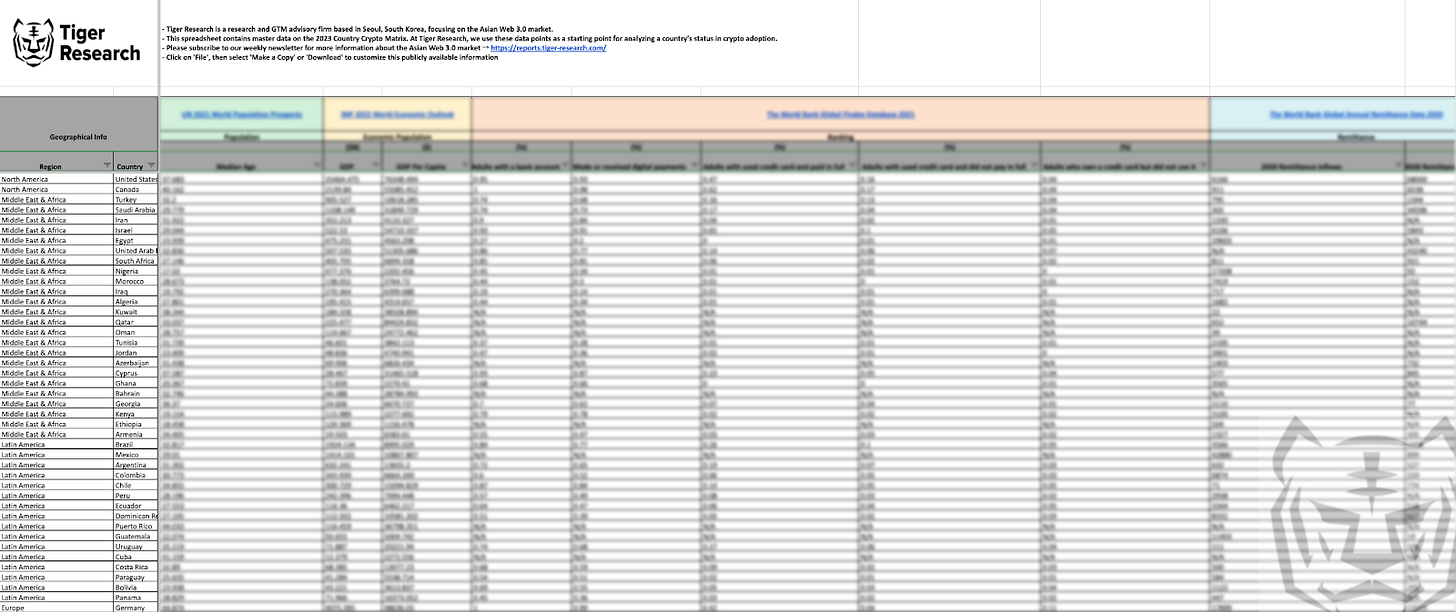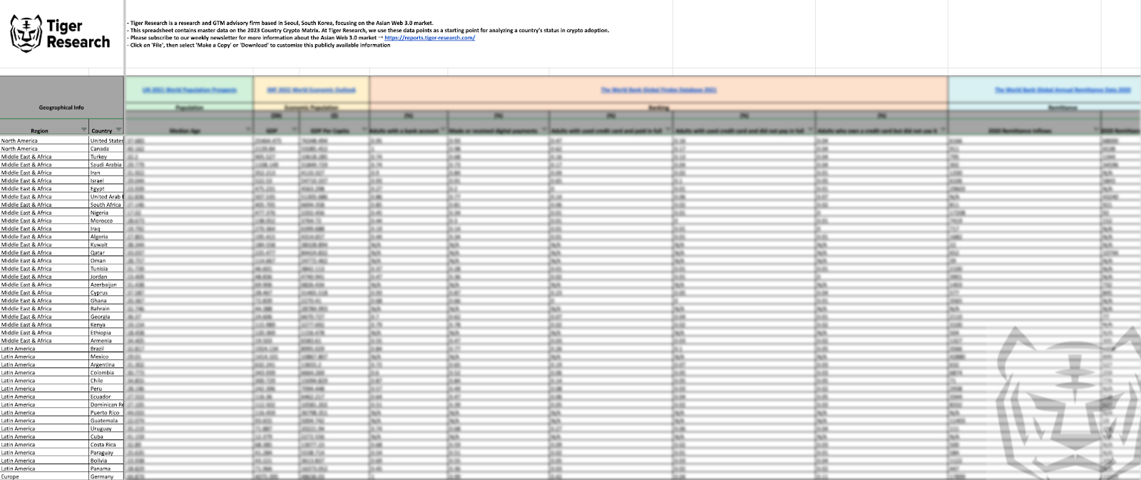 Participate in our 1-minute survey to help improve our weekly reports. As a thank you, you can download Tiger Research's original "2023 Country Crypto Matrix" spreadsheet, an all-in-one spreadsheet for the global virtual asset market analysis after finishing the survey.