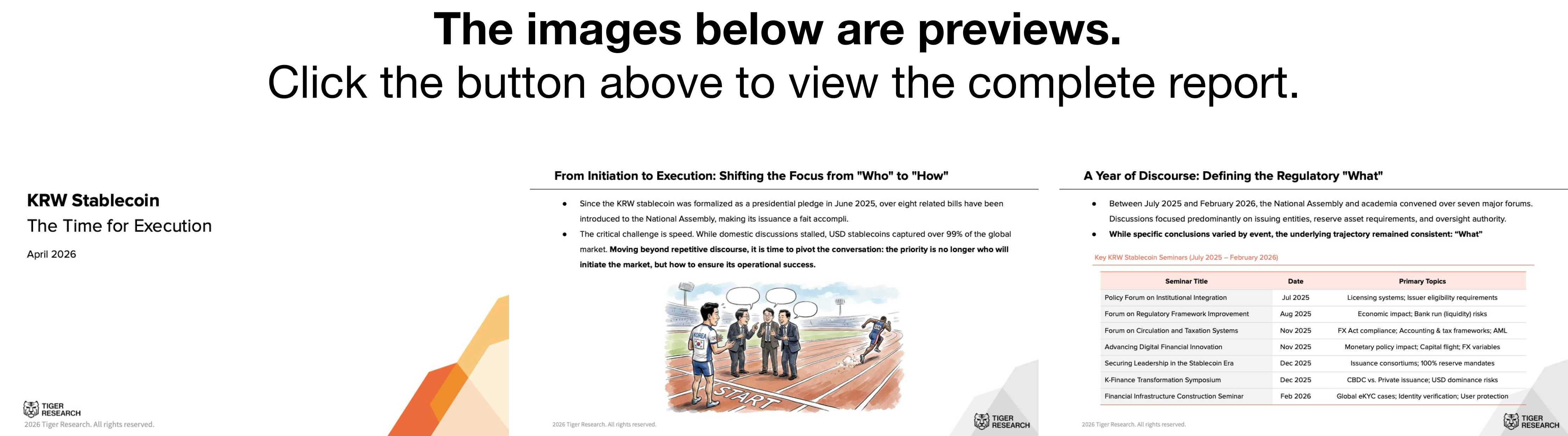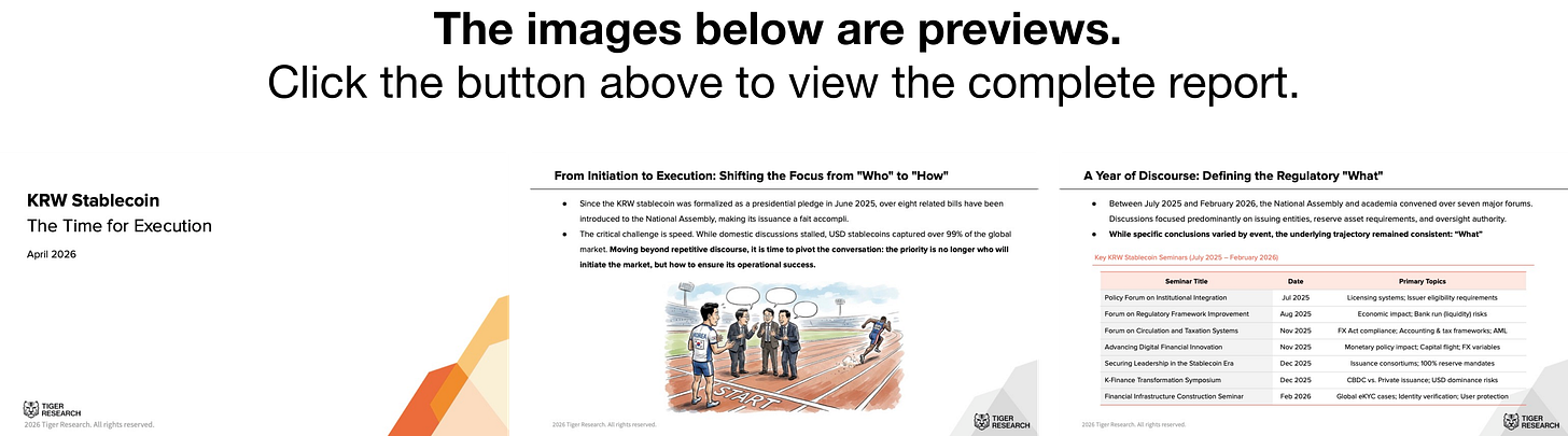 The critical challenge is speed. While domestic discussions stalled, USD stablecoins captured over 99% of the global market. Moving beyond repetitive discourse, it is time to pivot the conversation: the priority is no longer who will initiate the market, but how to ensure its operational success.