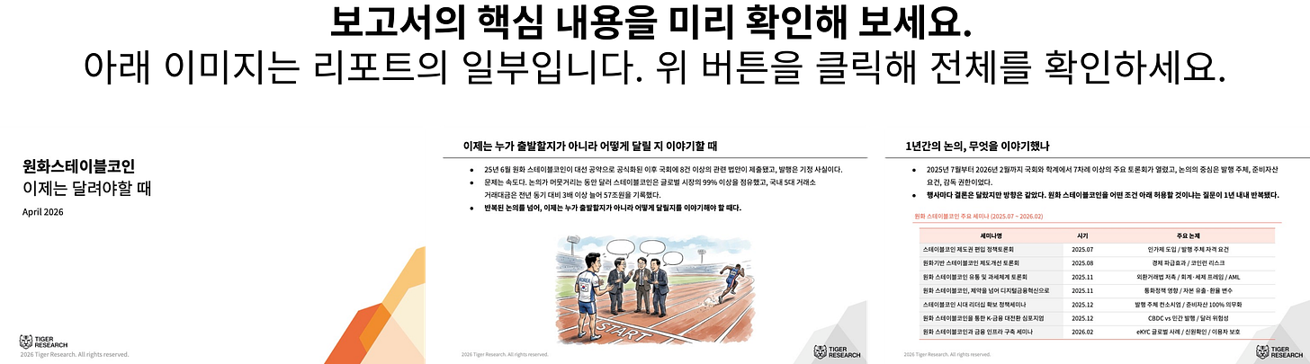 1년간의 논의는 발행 주체·감독 권한·리스크 경고라는 세 축을 벗어나지 못했다. 정작 원화 스테이블코인이 실제로 어떻게 작동해야 하는가는 단 한 번도 공식 의제에 오르지 않았다.