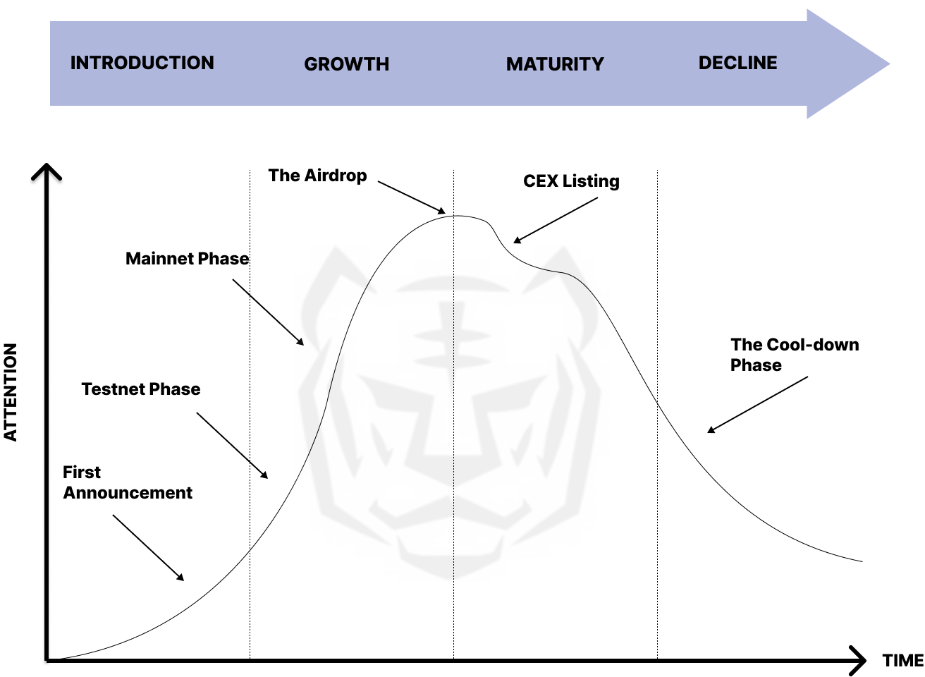 Most L2 projects start with announcements that hype the project. These announcements often include backing from large venture capital firms, endorsements from high-profile influencers, and high valuations. This stage is characterized by significant news coverage, extensive discussion on social media platforms, and endorsements from key celebrities (KOLs).