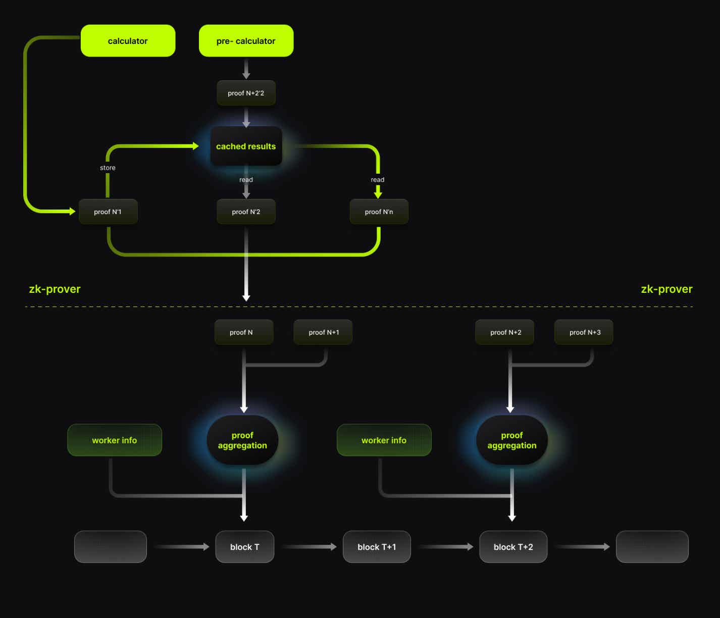 zkProver uses a Proof of Work (PoW) consensus structure. ZKP generation requires high-performance computation. Any individual or organization with GPU/CPU resources can join. They use their computing power to generate ZKPs and perform other tasks.