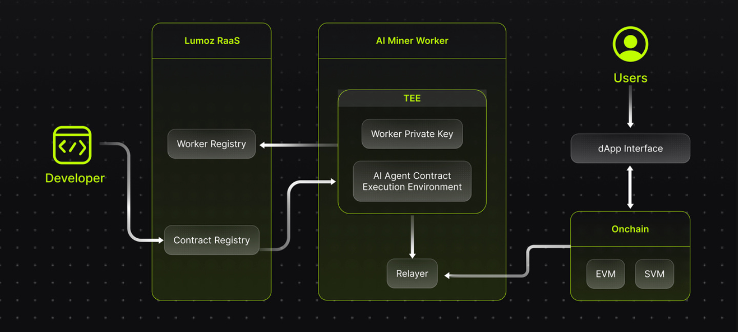 Lumoz uses two technologies to make AI systems more secure and trustworthy: Decentralized Root-of-Trust (DROT) using distributed computing and Trusted Execution Environment (TEE). AI agents act autonomously, but most currently operate in untrusted environments, limiting their security and transparency. In these environments, protecting sensitive information and verifying results is difficult, reducing decision reliability.