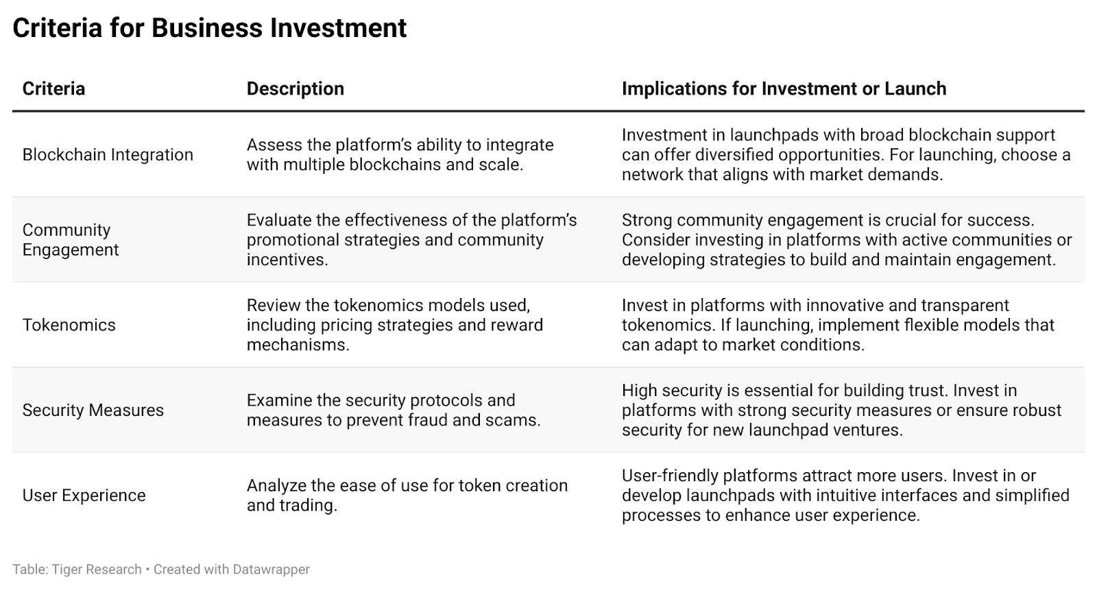 블록체인 통합과 확장성: 여러 블록체인을 지원하는 런치패드가 유리하다. 이런 플랫폼은 다양한 시장에 진출할 수 있고, 거래량이 늘어나도 잘 대응할 수 있다. 특히 빠르고 수수료가 저렴한 블록체인과의 연계가 중요하다.