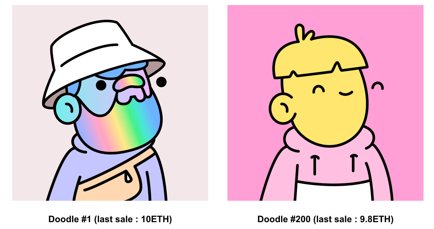 NFT는 말 그대로 대체불가능한 토큰으로 같은 형태의 프로젝트라도, 각각의 토큰은 속성과 가격은 다를 수 있다. 예를 들어 Doodles의 1번 토큰과 200번 토큰은 가격이 다른 것과 같다. 때문에 이더리움과 같은 FT에 비해 거래가 원활하지 않고, 일반적으로 유동성 공급에 어려움이 있는 구조이다.