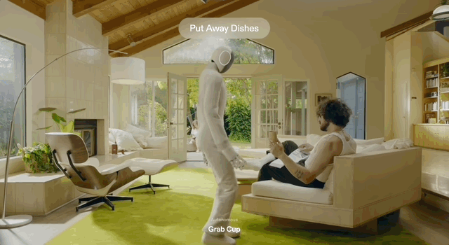 Neo membersihkan rumah. Robot anjing Unitree bermain dengan anak-anak. Optimus pergi ke supermarket dan berbelanja bahan untuk makan malam. Setiap robot membagi tugas dan menyelesaikannya secara bersamaan. Pengguna menikmati hari yang jauh lebih efisien.