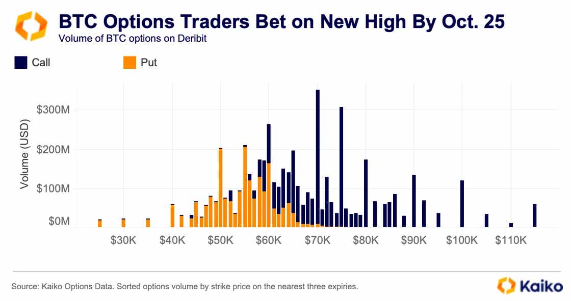 시장이 위험 자산을 선호하는 분위기로 전환되면서 지난 몇 주간 옵션 거래량이 증가했습니다. 트레이더들은 역사상 비트코인을 거래하기 가장 좋은 달로 알려진 10월을 앞두고 가격 상승 움직임을 위한 포지션을 취하고 있습니다. 2013년 이후, 10월에 비트코인 가격이 하락한 경우는 단 두 번뿐입니다.