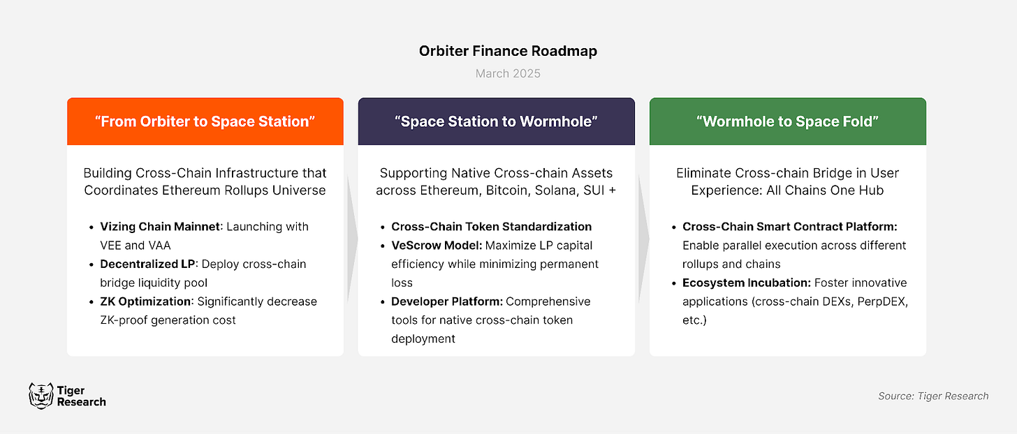 To address these limitations, Orbiter Finance is developing an infrastructure that enables direct rollup-to-rollup communication. This Omnichain Infrastructure removes barriers between blockchain networks, facilitating seamless asset transfers and data exchange while reducing dependency on Ethereum L1. By allowing L2 liquidity to be shared as a collective resource, Orbiter aims to increase efficiency across the Ethereum ecosystem.
