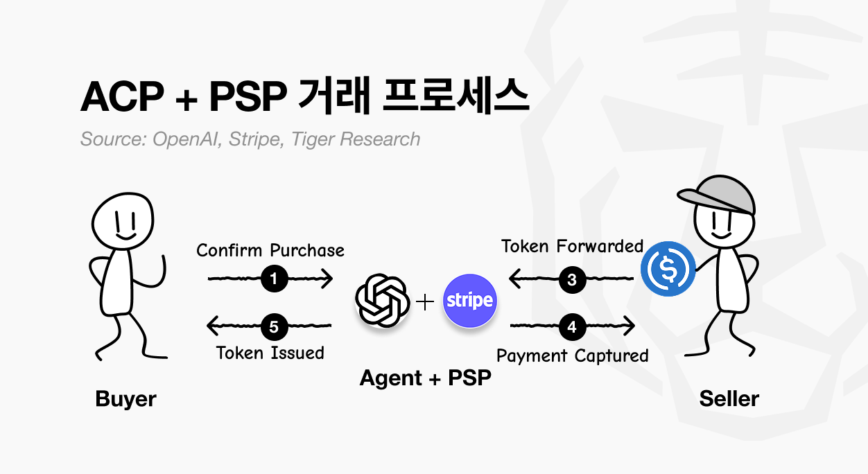 ACP는 에이전트가 판매자의 결제 시스템을 호출해 사용자 대신 상품을 구매할 수 있도록 하는 오픈소스 프로토콜이다. ACP는 1) Buyer 2) Seller 3) Agent 4) Payment Provider 주체 구조로 권한을 부여한다.