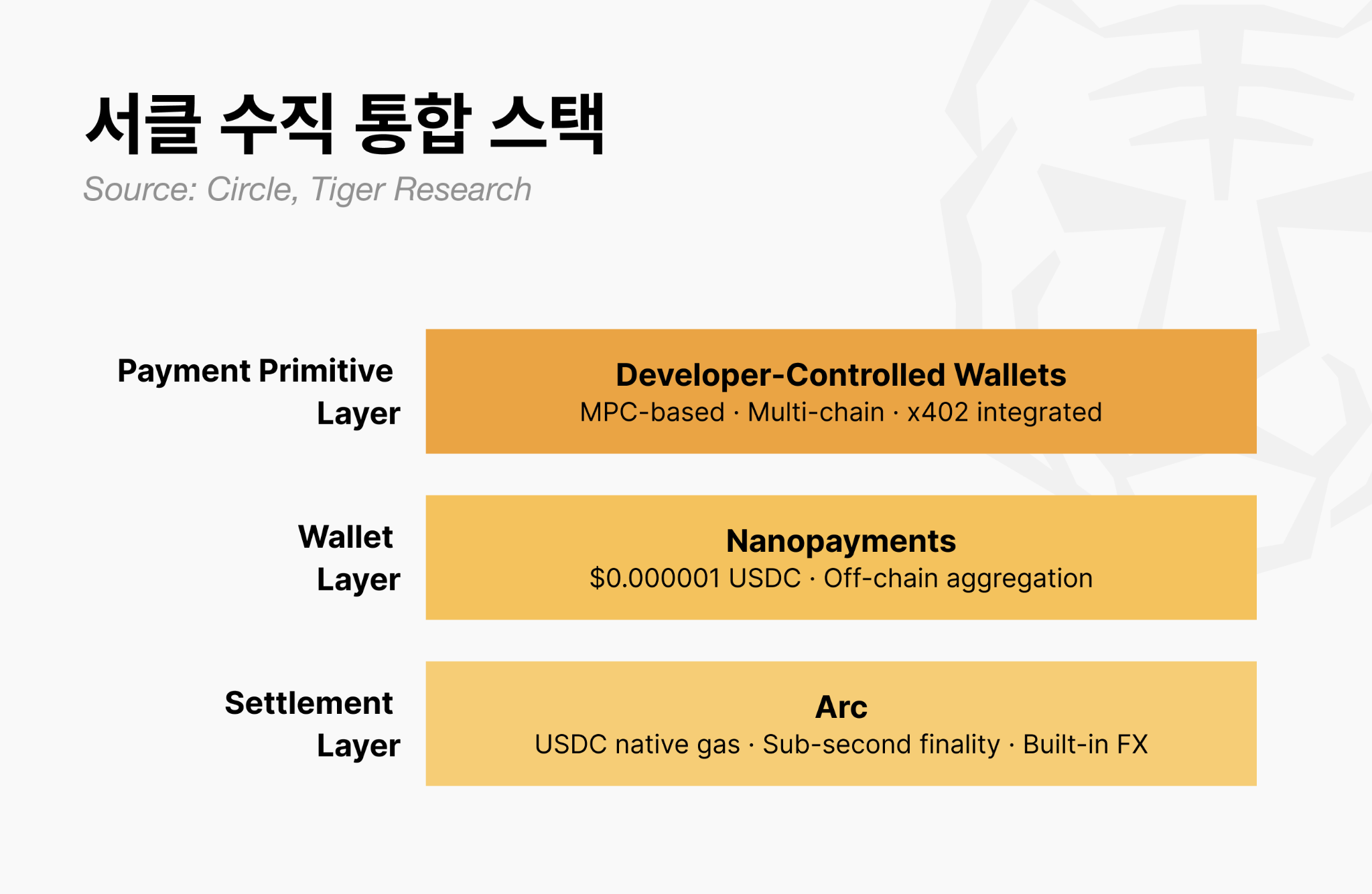 서클(Circle)은 USDC 발행사라는 정체성에서 출발해 스테이블코인 인프라 전반으로 확장해온 회사다. 에이전트 결제 시대에는 USDC가 단순히 결제 수단에 머물지 않고, 결제 프리미티브·지갑·정산 체인까지 자사 스택으로 수직 통합하는 풀스택 전략을 택했다.