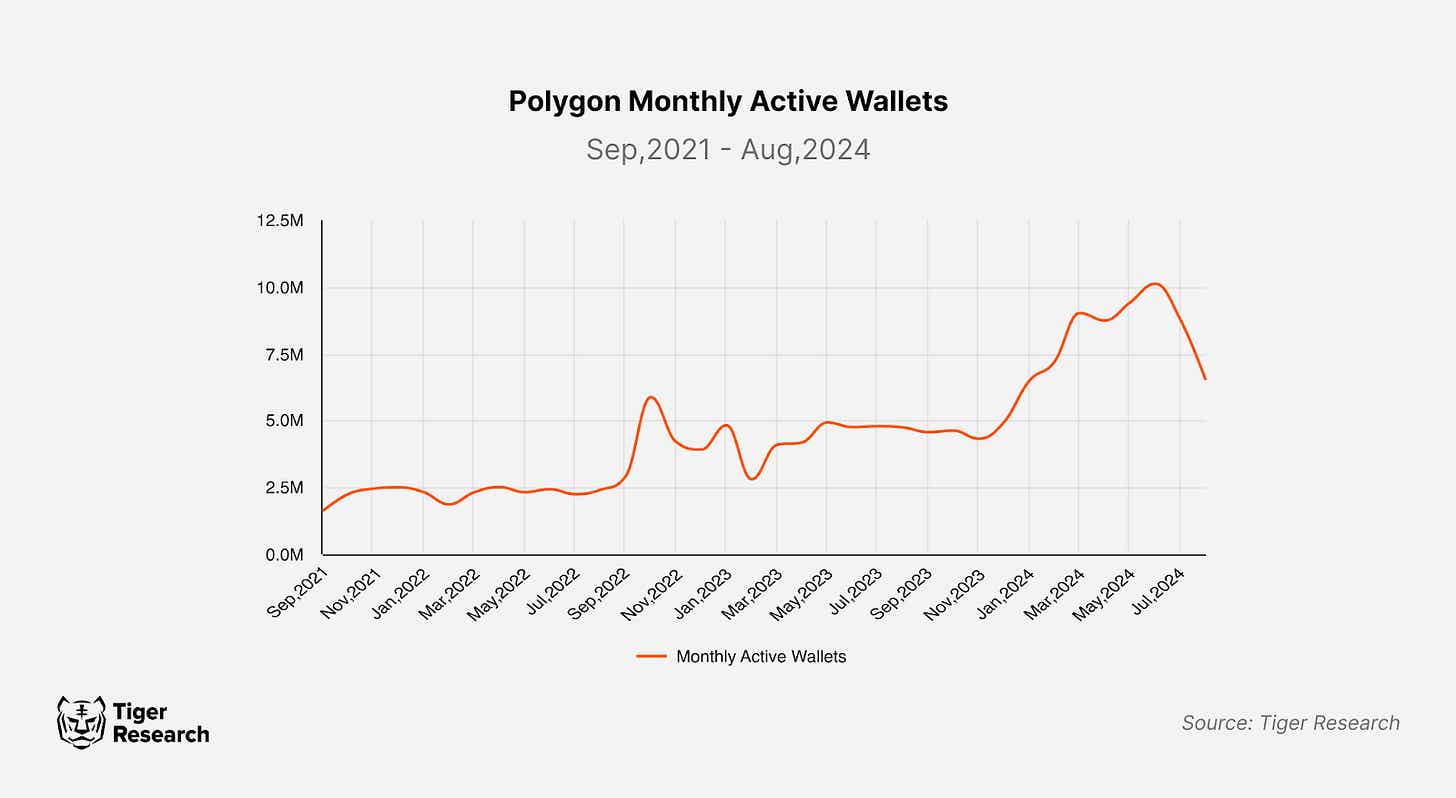 In 2022, Polygon Labs captured significant attention through high-profile collaborations with companies like Starbucks and Reddit alongside its announcements of technological developments such as Polygon zkEVM and Polygon CDK. However, market interest waned as the NFT market cooled and collaborations slowed. Delays in development further exacerbated this problem.