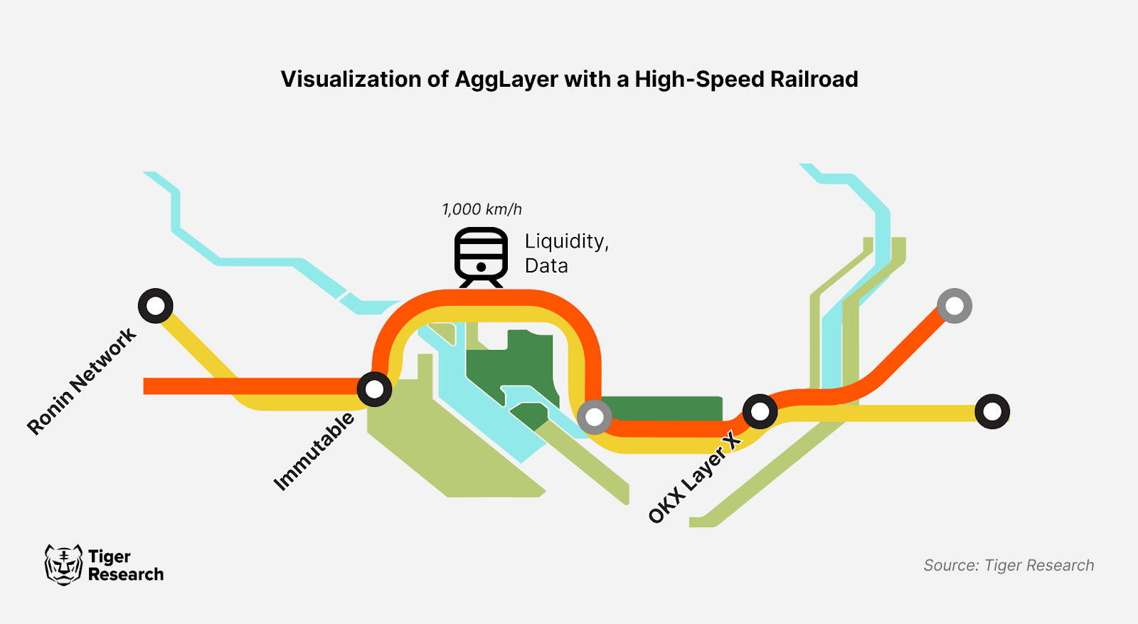 The AggLayer is a future innovative system designed to connect multiple independent blockchains It will unify assets, users, and information while preserving the autonomy of each chain. In essence, it will provide the user experience of a unified network, despite the distinct characteristics of each blockchain. An apt analogy for AggLayer would be a high-speed railroad that links different countries and facilitates the seamless movement of resources across borders, and one where native assets were native to every country alike.