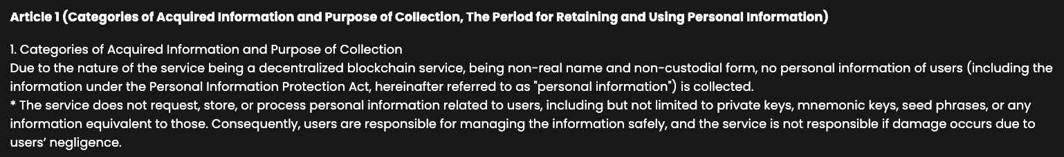 Furthermore, when selecting a wallet service for service development, it is necessary to consider not only functionality and ease of use but also whether the wallet service has a VASP license. This is especially the case if the service operates in a country with strict privacy regulations, such as South Korea. Users should check whether the service has the necessary license as a VASP and whether its privacy policy is transparently disclosed.