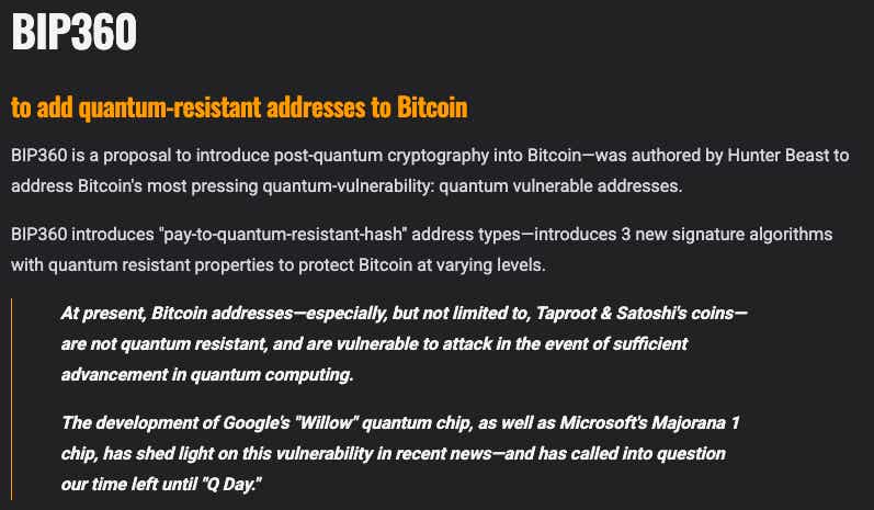 监管机构和主要机构已经认识到这一风险。2024 年美国国家标准与技术研究院引入了后量子密码学标准。贝莱德也在其比特币 ETF 申请文件中指出,量子计算的进展可能威胁比特币的安全。