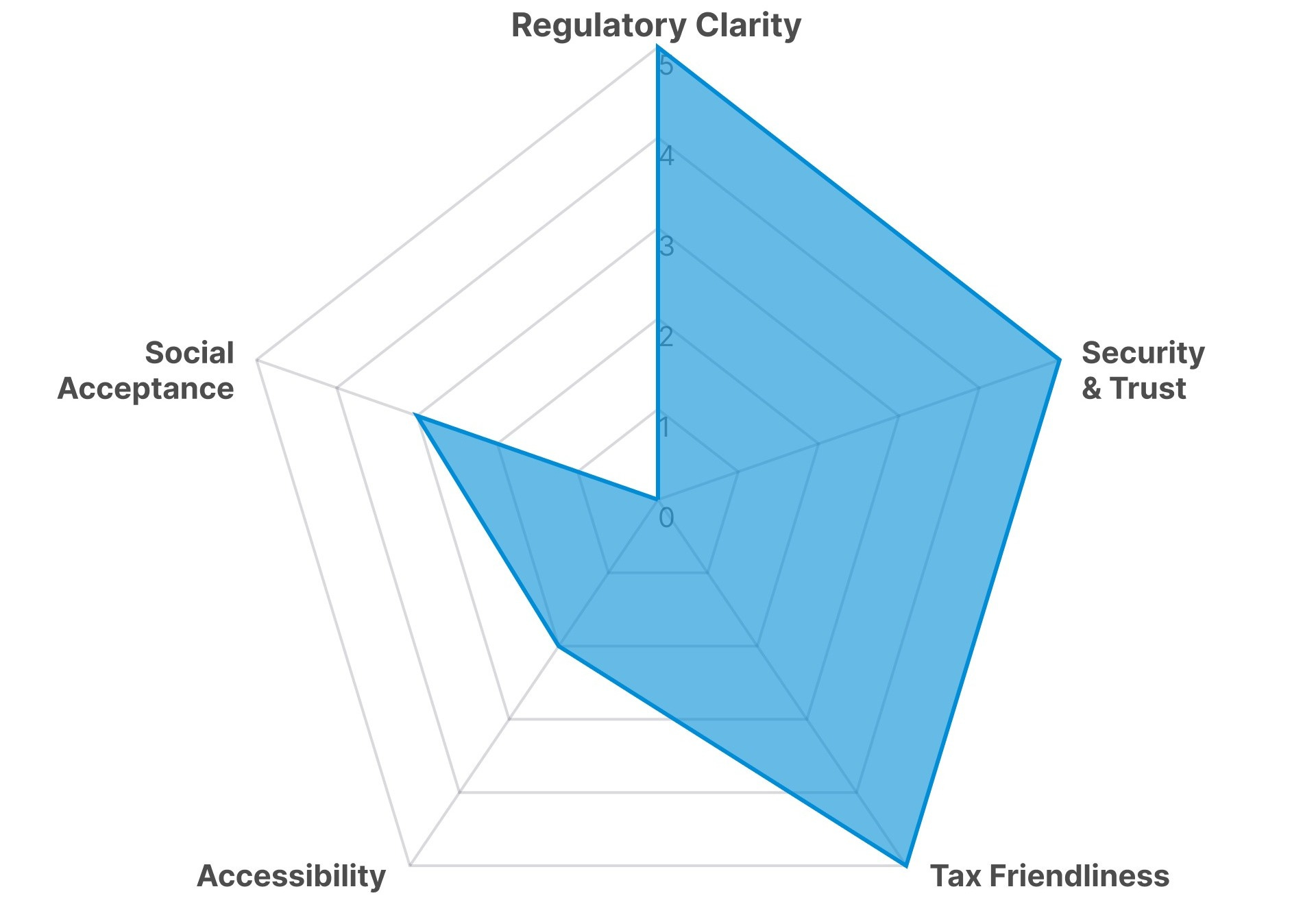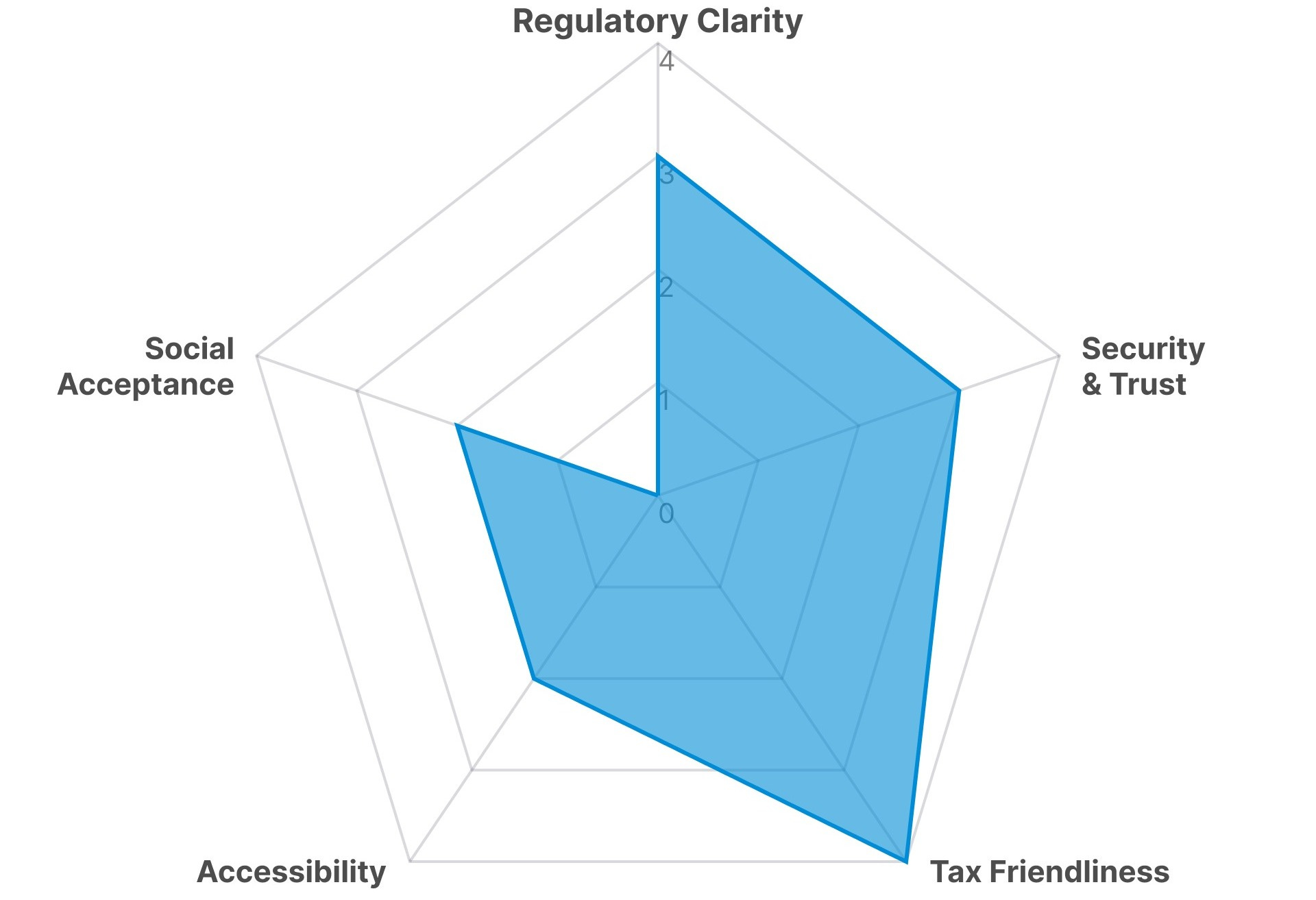 Singapore is the most balanced market among the eight countries in this report across all five barrier dimensions: regulation, security, tax, accessibility, and social perception. None is notably weak.