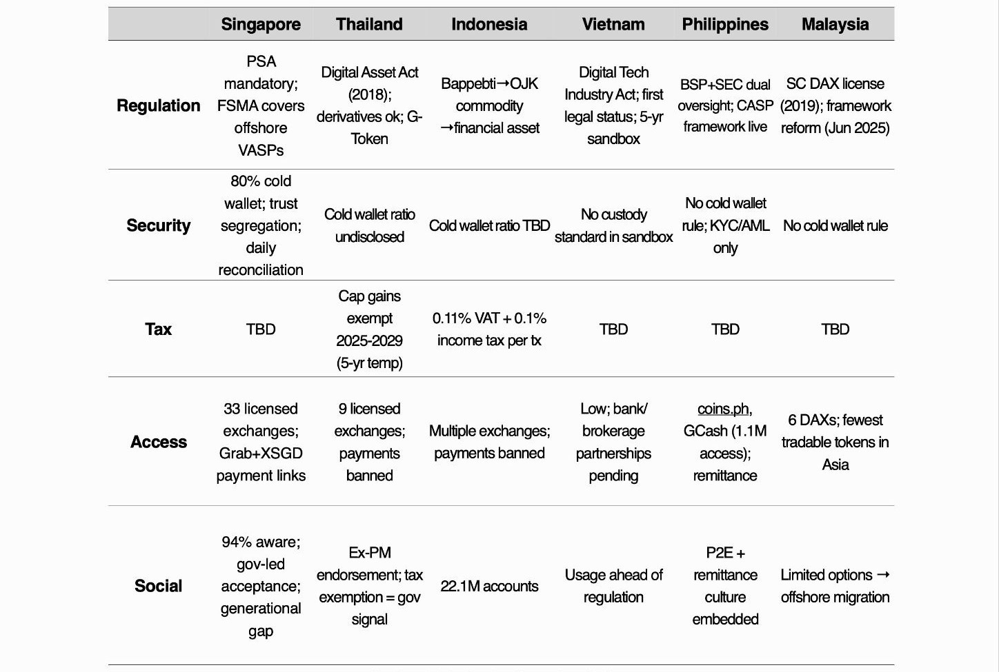 Social acceptance is already sufficient. The issue is the institutional protection built on top of it. BSP has frozen new VASP license issuance since September 2022. Despite an additional extension in September 2025, only 9 VASPs exist. The SEC implemented the CASP framework in July 2025, introducing minimum capital, asset segregation, and marketing regulations, but it remains in early stages.