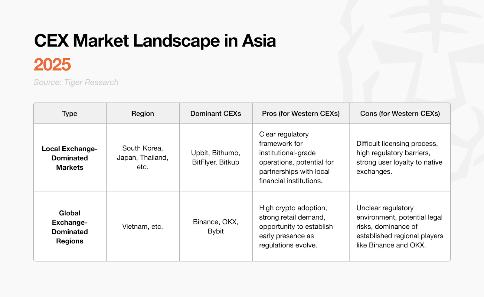Laporan ini disusun oleh Tiger Research, menganalisis ekspansi strategis exchanges kripto dari Barat seperti Robinhood dan Coinbase ke pasar Asia, pendekatan lokalisasi mereka, serta dinamika persaingan dengan pemain regional.