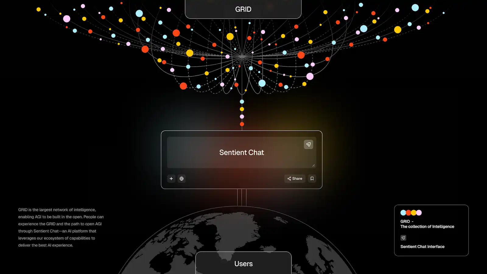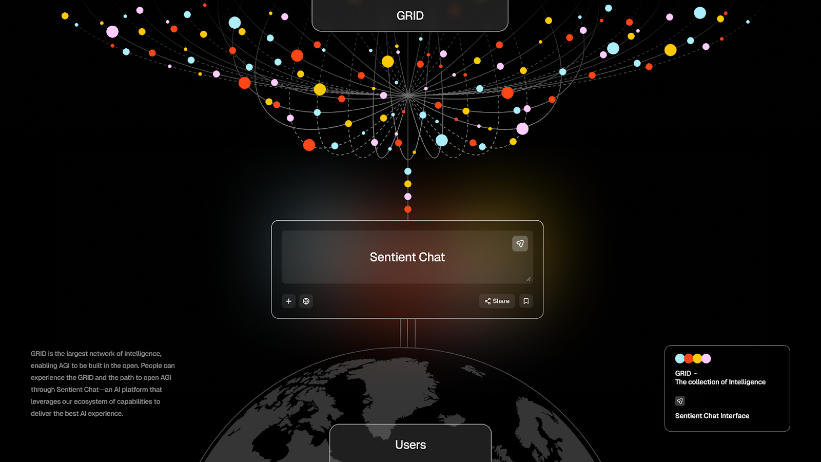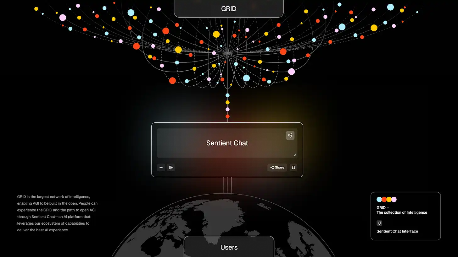 GRID builds a sophisticated open AGI ecosystem. General users still find it complex to access directly. Sentient developed Sentient Chat as one way to experience this ecosystem. ChatGPT created a turning point for AI technology popularization. Similarly, Sentient aims to demonstrate through Sentient Chat that open AGI works as a practical technology.