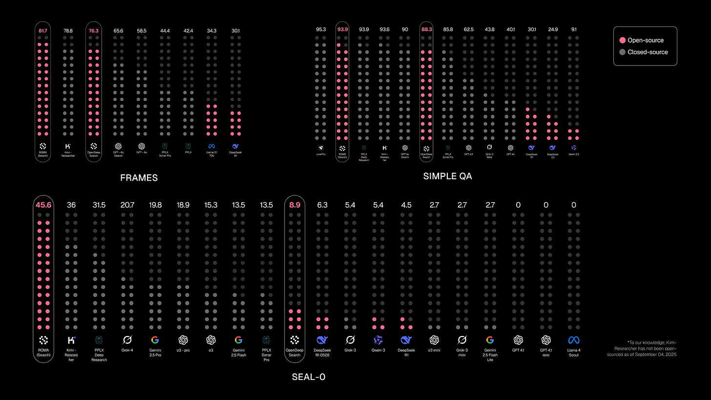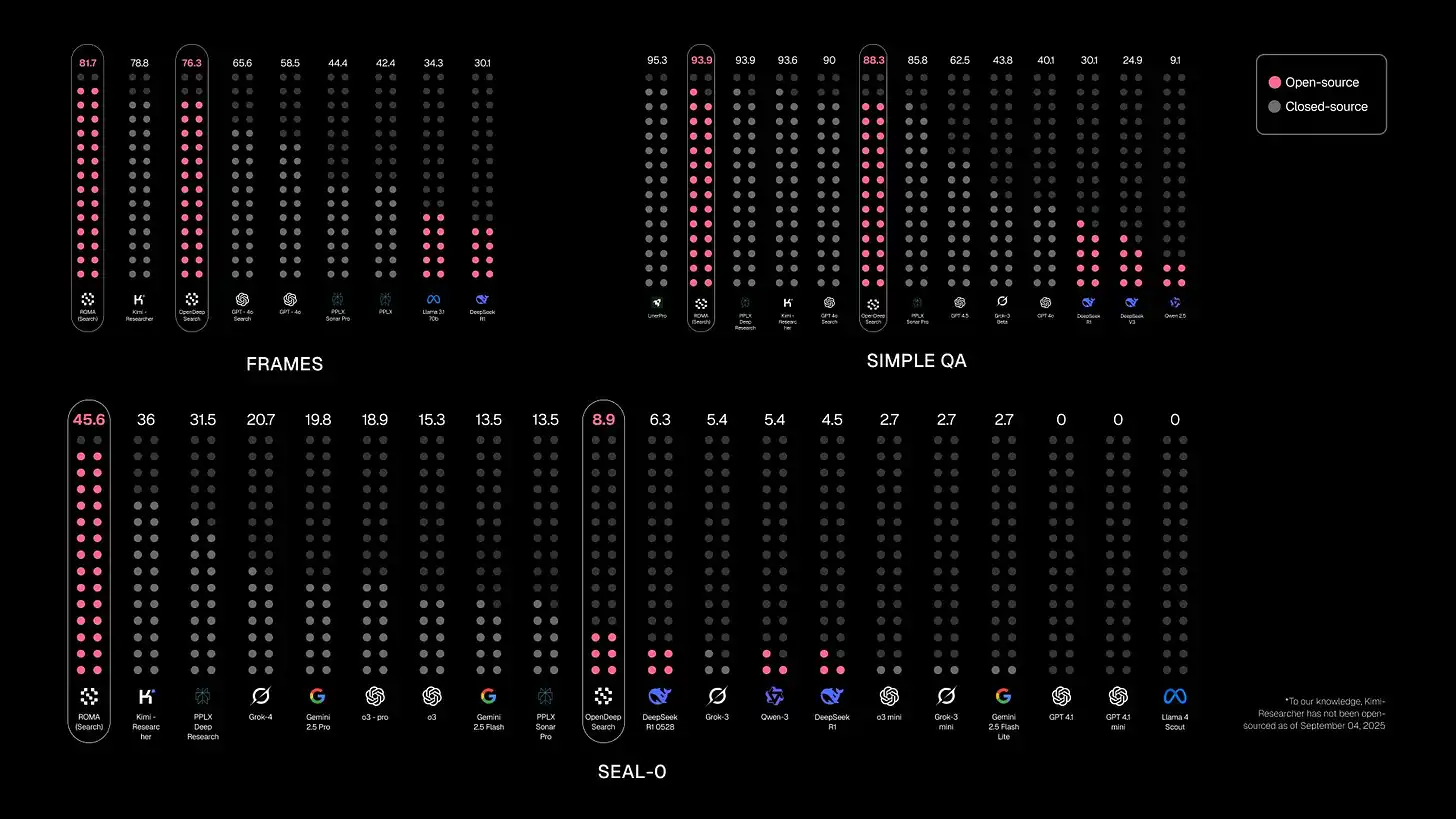 ROMA also delivers impressive benchmark results in terms of performance. ROMA Search recorded 45.6% accuracy on SEALQA’s SEAL-0 benchmark, which represents more than double Google Gemini 2.5 Pro’s 19.8%. ROMA also demonstrates solid performance on FRAME and SimpleQA benchmarks. These results hold meaning beyond simple numbers. They clearly demonstrate that a “collaborative structure” alone can surpass high-performance single models. Furthermore, they carry significant weight by practically proving that Sentient can build a powerful AI ecosystem through combinations of diverse open-source models alone.