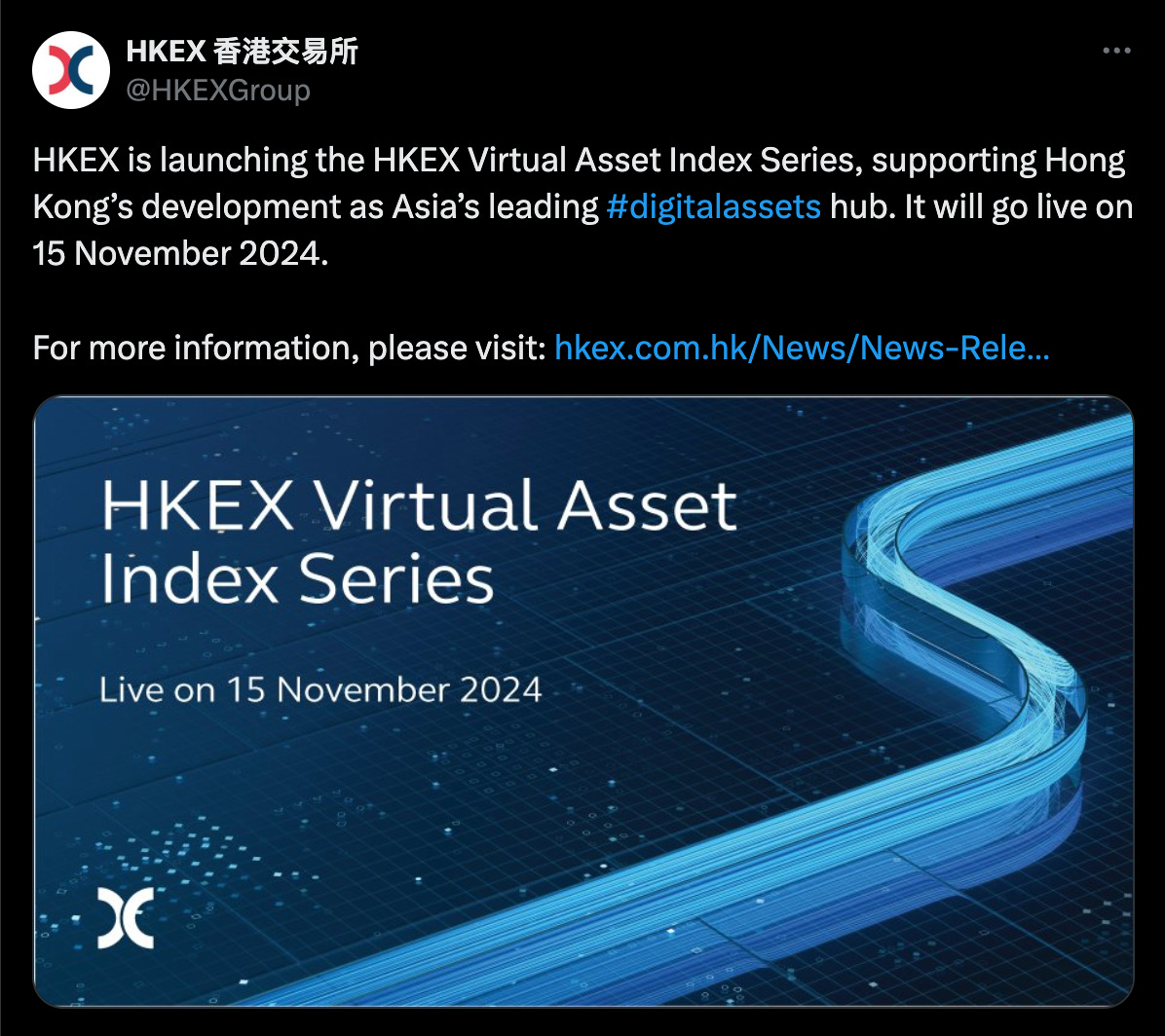 The HKEX Virtual Asset Index Series was launched on November 15, 2024. It introduces two essential tools: the Reference Index and the Reference Rate for Bitcoin and Ethereum, providing standardized pricing that aligns with the Asian time zone.