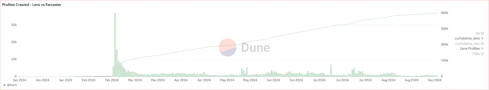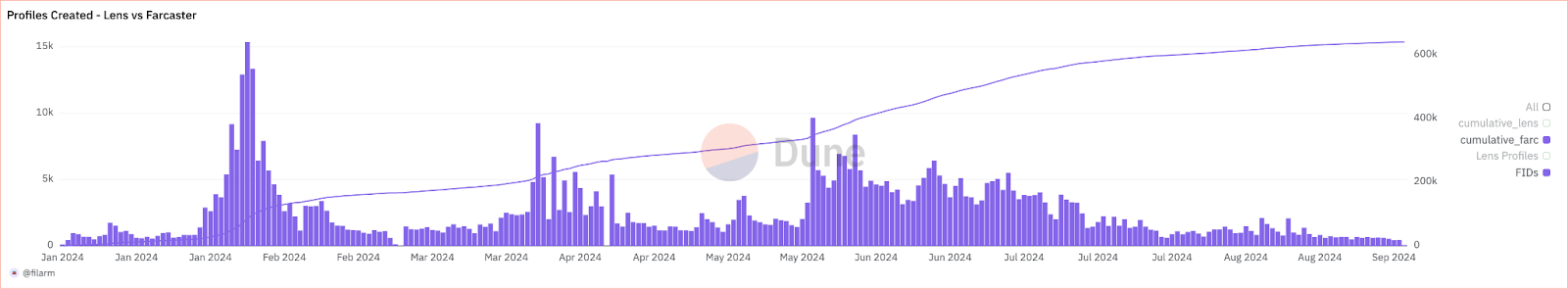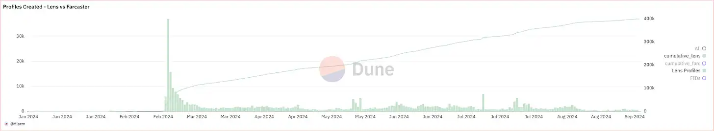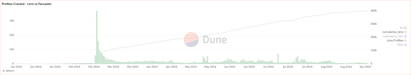 Lens Protocol recorded a massive surge in handle registrations, driven by Fear of Missing Out (FOMO) and the early excitement surrounding its decentralized social features. The platform's growth appeared promising, with thousands of new users flocking to create accounts. However, once the novelty wore off, growth stagnated dramatically. In recent months, new registrations plummeted to just 142 handles, a stark contrast to the vibrant activity seen in the early days.