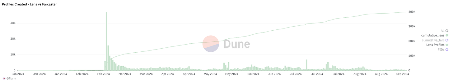 파캐스터(Farcaster)와 해당 소셜 네트워크을 사용하는 앱 워프캐스트(Warpcast)는 2024년 5월 1억 5천만 달러 이상의 투자 유치로 큰 주목을 받았다. 해당 서비스 역시 초기의 FOMO 현상으로 일일 활성 사용자가 급증했고, 성공가도를 달릴 것처럼 보였다.