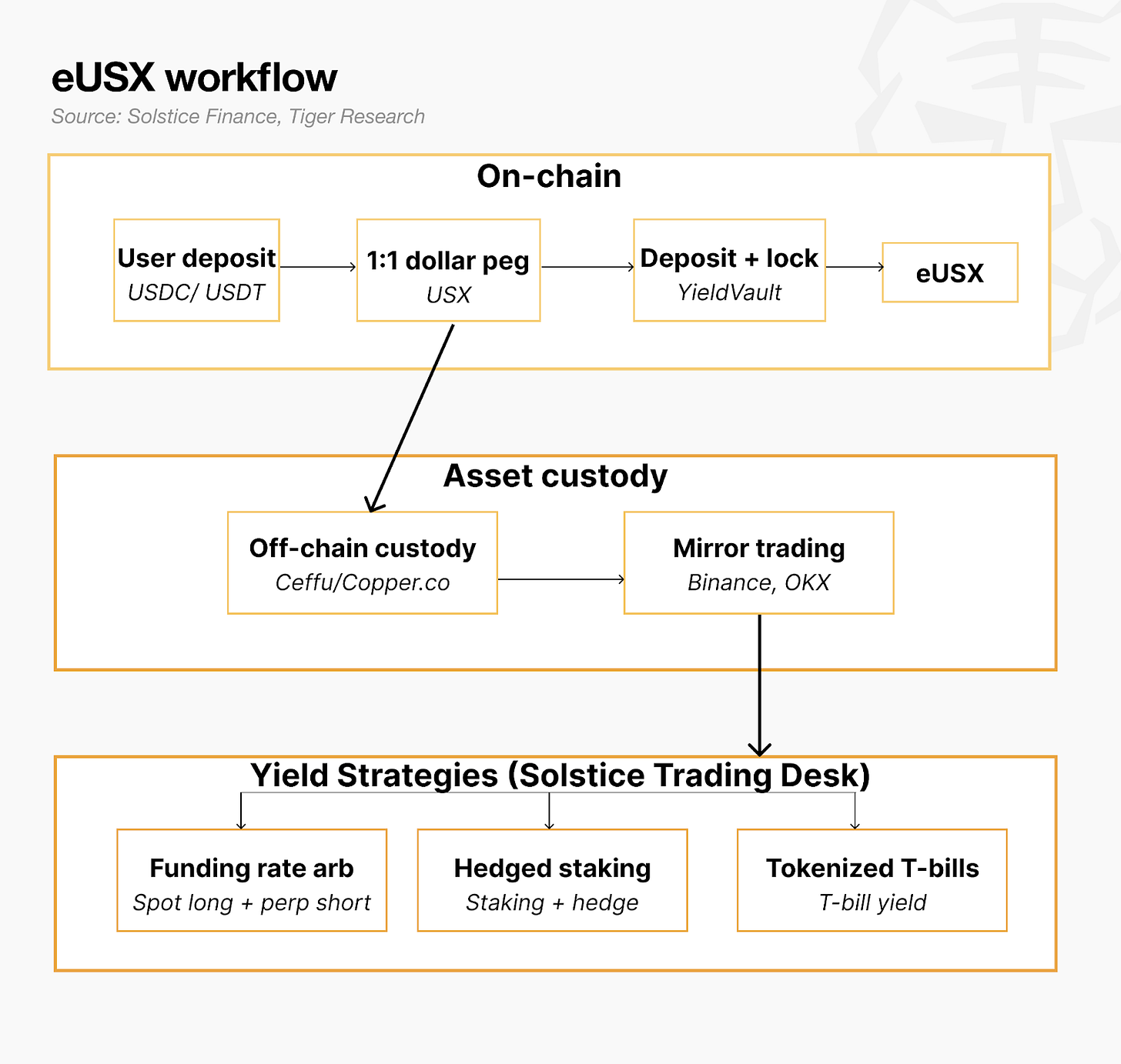 eUSX is Solstice’s core yield product. The mechanism works as follows: