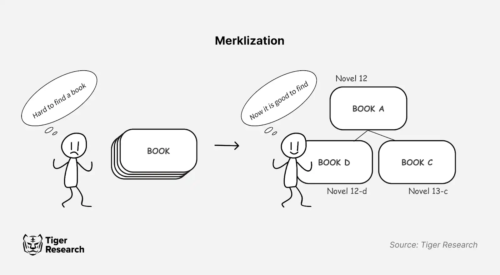 SOON tiếp tục cải thiện kiến trúc Solana bằng cách triển khai Merklization, giúp nâng cao độ tin cậy và khả năng mở rộng của blockchain. Merklization tạo ra một cấu trúc dữ liệu có tổ chức, tương tự như hệ thống mục lục trong thư viện, cho phép người dùng tra cứu nhanh thay vì phải kiểm tra từng kệ sách.