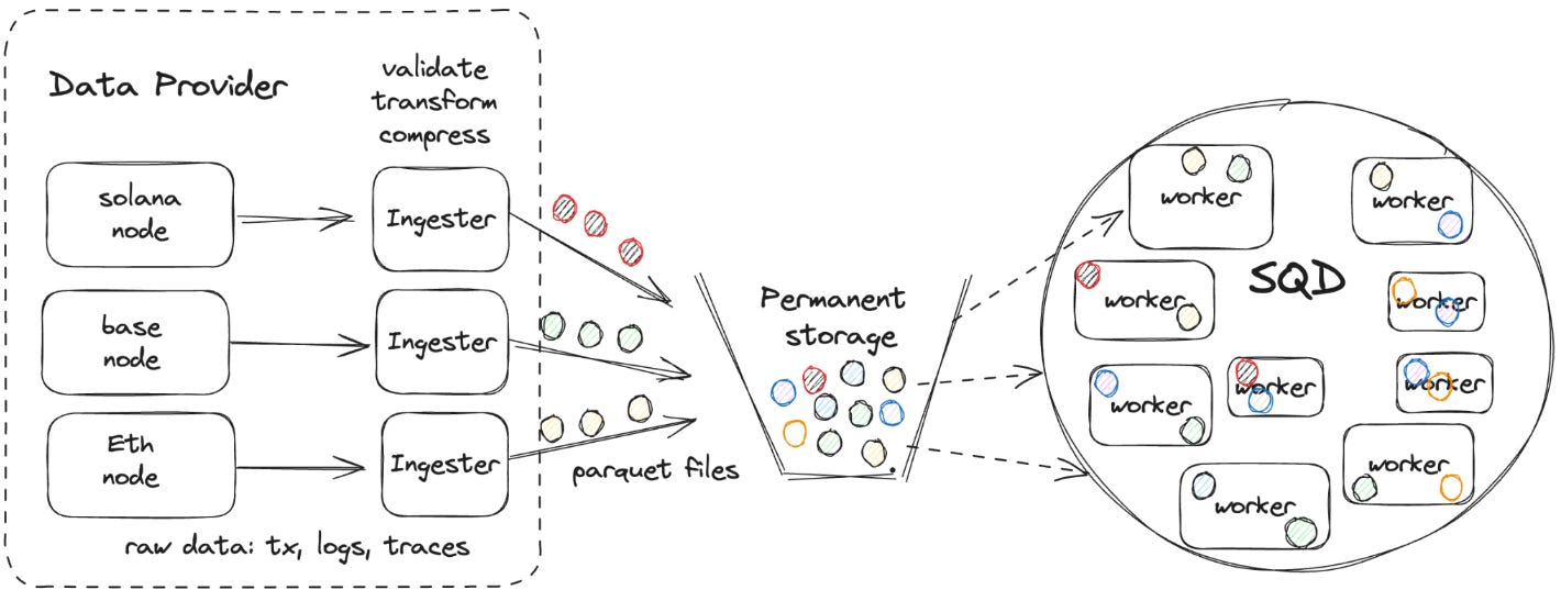 한편 데이터 프로바이더는 현재 초기 부트스트랩 단계로 SQD 팀이 담당하고 있다. 이는 초기 데이터 품질과 안정성을 보장하기 위한 전략이며, 네트워크가 성숙하면 토큰 거버넌스를 통해 외부 프로바이더도 참여할 수 있도록 확장되어 데이터 소싱 단계까지 완전히 탈중앙화될 예정이다.