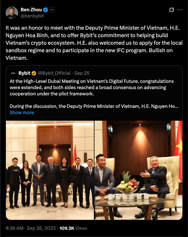 Bybit has also positioned itself strongly. On September 17, 2025, it signed an MOU with the People’s Committee of Da Nang, alongside the Abu Dhabi Blockchain Center (ADBC) and Verichains. The partnership covers liquidity provision, infrastructure security, and ecosystem connectivity, aligning closely with Vietnam’s objectives for its regime. Bybit’s agreement, while not as high-level as Binance’s meeting with the Deputy Prime Minister, gives it a tangible foothold in the IFC narrative.