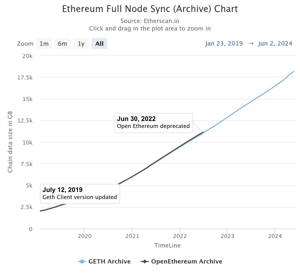 마지막으로, 블록체인 데이터의 양이 방대하다는 점이다. 필요한 데이터를 추출, 변환, 적재하는 작업은 많은 시간과 비용을 소모한다. 게다가 각 체인별로 모든 블록의 상태를 보관하는 아카이브 노드(Archive Node)의 크기는 시간이 지남에 따라 계속 커지고 있으며, 솔라나(Solana)의 경우 약 100TB에 달한다. 또한, 각 체인별로 하루에 백만 건 이상의 트랜잭션이 발생하기 때문에, 이러한 방대한 데이터를 저장하고 처리하려면 막대한 자원이 필요하다. 이러한 문제는 블록체인 기술의 활용을 어렵게 만드는 요인 중 하나이다.