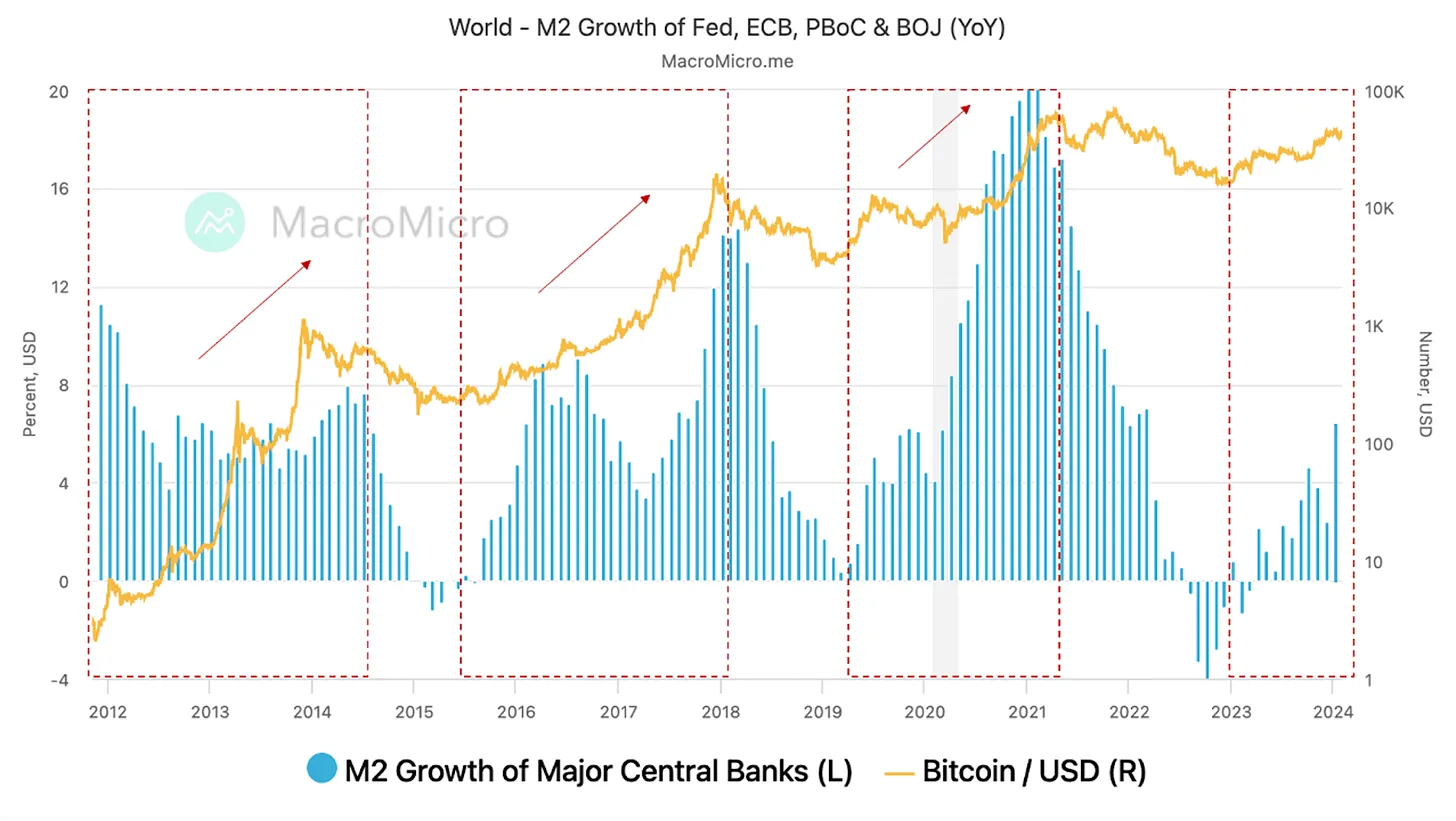 Karena karakteristik ini, korelasi antara pertumbuhan M2 global dan harga Bitcoin sangat tinggi, memperlihatkan pola di mana arus modal mengalir ke Bitcoin ketika likuiditas meningkat. Hal ini menjadikan tren likuiditas global sebagai indikator kunci yang perlu diperhatikan dalam pengembangan strategi investasi Bitcoin.