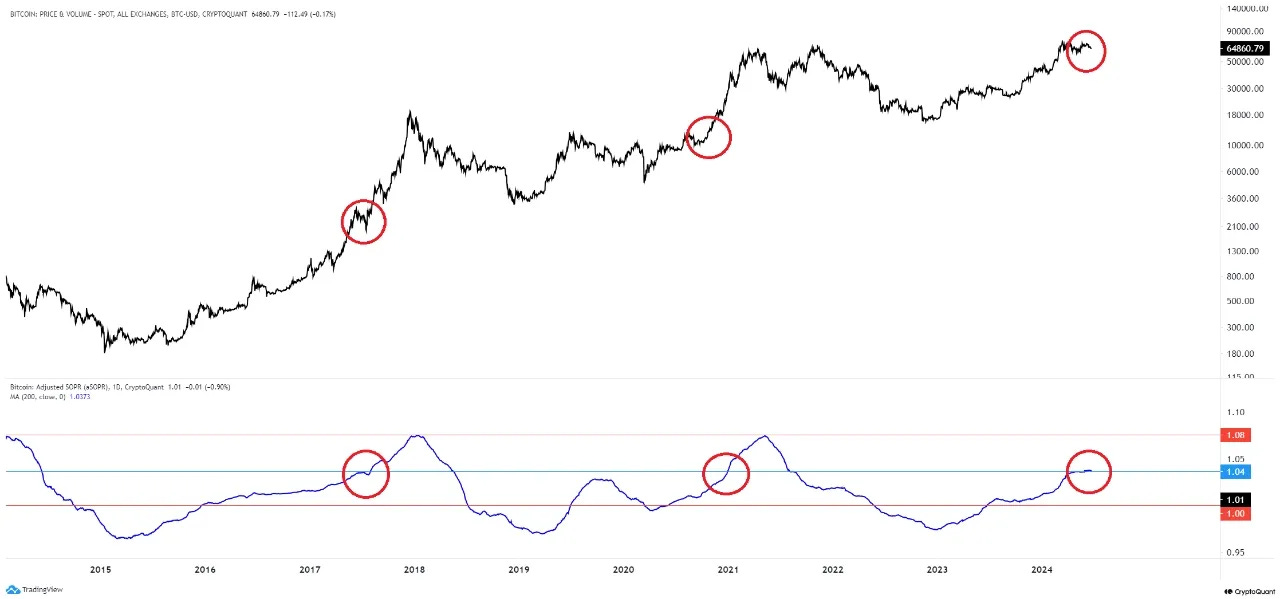 Ketika aSOPR > 1,0, penjual sedang memperoleh keuntungan.