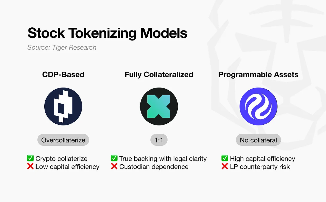 Penerbit berperan dalam mengkonversi saham tradisional menjadi aset digital. Contohnya, Backed Finance menyimpan saham Apple di bank kustodian di Swiss dan menerbitkan token $xAAPL berdasarkan rasio 1:1. Sebaliknya, Injective menawarkan $iAAPL sebagai aset sintetis melalui iAssets tanpa menyimpan saham fisik. Harga disinkronkan melalui oracle, memungkinkan perdagangan leverage tanpa penyelesaian fisik. Kedua pendekatan tersebut menunjukkan cara berbeda untuk menjembatani pasar saham tradisional dengan infrastruktur blockchain.