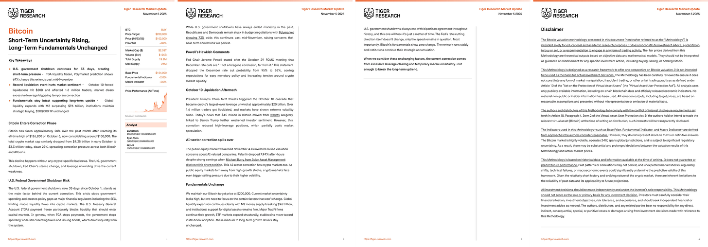 This Methodology is designed as a research framework to offer one perspective on Bitcoin valuation. It is not intended to be used as the basis for actual investment decisions. The Methodology has been carefully reviewed to ensure it does not constitute any form of market manipulation, fraudulent trading, or other unfair trading practices as defined under Article 10 of the “Act on the Protection of Virtual Asset Users” (the “Virtual Asset User Protection Act”). All analysis uses only publicly available information, including on-chain blockchain data and officially released economic indicators. No material non-public or insider information has been used. All valuation outputs, including target prices, are based on reasonable assumptions and presented without misrepresentation or omission of material facts.