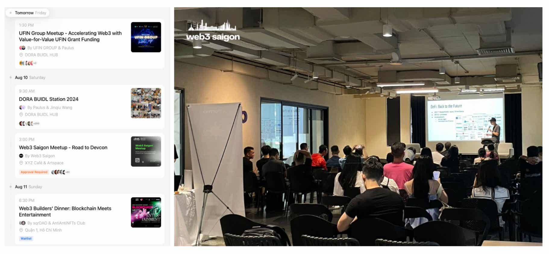 현지 개발자 커뮤니티는 베트남 내 블록체인 개발 역량을 증진하는 데 핵심적인 역할을 한다. 정기적인 밋업과 이벤트는 개발자들이 지식을 공유하고, 프로젝트 간 협업을 촉진하며, 업계 동향에 대한 최신 정보를 제공받는 효과적인 채널을 제공한다. 특히, 도라핵스(DoraHacks)와 웹3 사이공(Web3 Saigon)과 같은 커뮤니티는 블록체인 전문가들을 위한 협력 네트워크를 구축하는 데 있어 중요한 역할을 하고 있다.