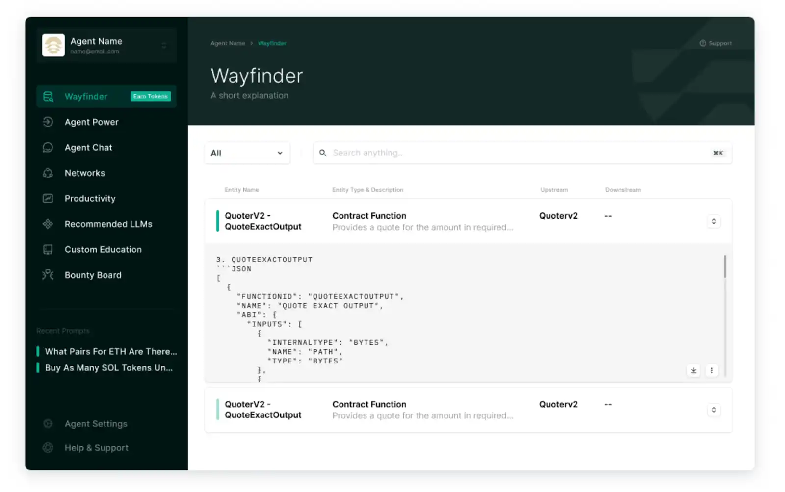The Wayfinder Graph is a navigation system that systematically organizes complex blockchain ecosystems. Google Maps connects roads, buildings, and traffic information worldwide in real-time. It guides users to optimal routes. Similarly, Wayfinder Graph structures relationships between DeFi protocols, smart contracts, and assets across various blockchain networks. This helps agents perform tasks through the most efficient paths.