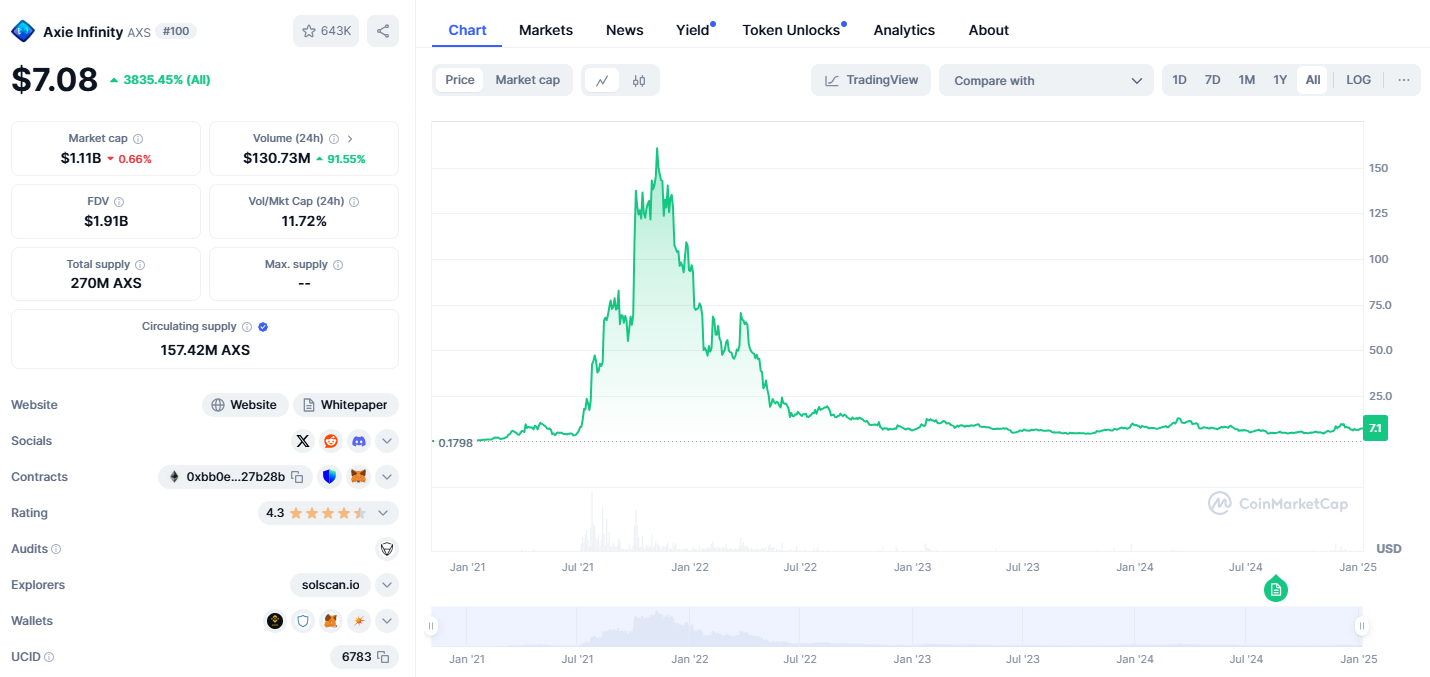 엑시 인피니티의 급격한 하락세는 웹3 게임 생태계의 구조적 문제점을 여실히 보여줬다. 2022년 3월 148만 명이었던 사용자 수는 4월 80만 명으로 급감했다. AXS 토큰 가치 역시 최고점 164.90달러에서 현재 7.11달러까지 95.7% 하락하며 시장의 기대를 무너뜨렸다. 많은 분석가들이 지속가능성 측면에서 이 실패를 조명했지만, 실제로는 게임 산업과 웹3 생태계 간의 근본적인 괴리가 핵심 원인이었다.