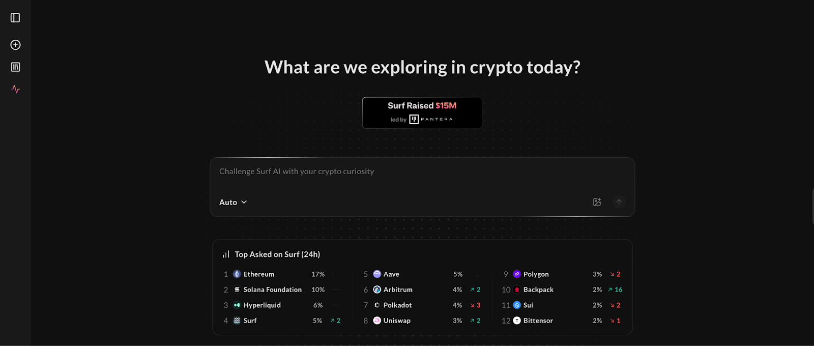 Projects like Surf address this by offering crypto-specific AI research tools that consolidate dispersed data sources. Among all AI use cases in crypto, research has the lowest entry barrier for general users, requiring no coding or trading expertise.