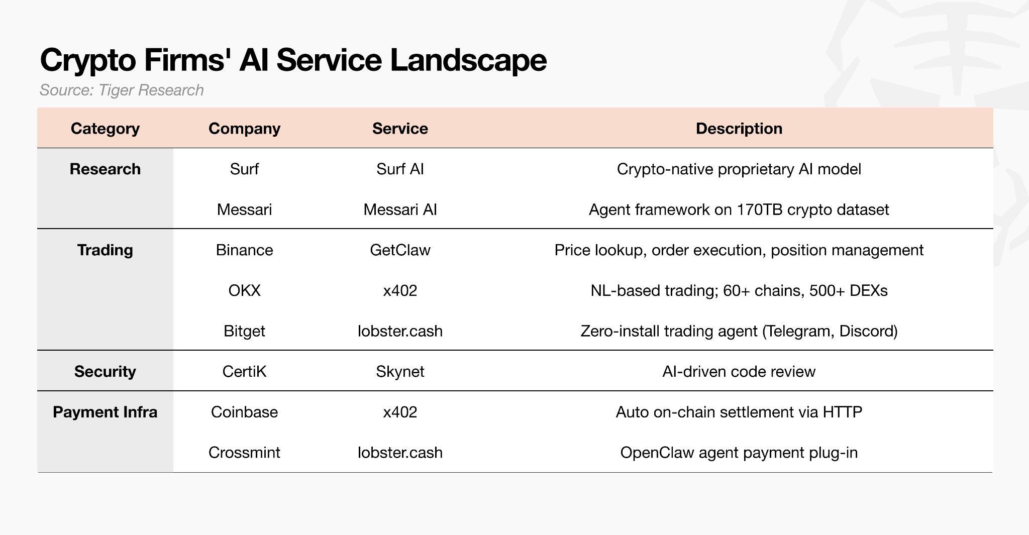 Crypto firms across exchanges, security, payments, and research are simultaneously rolling out AI services